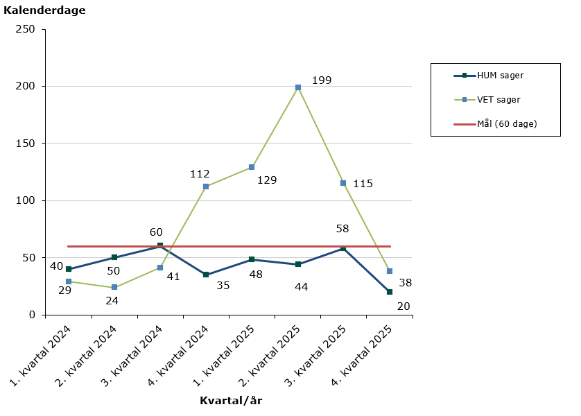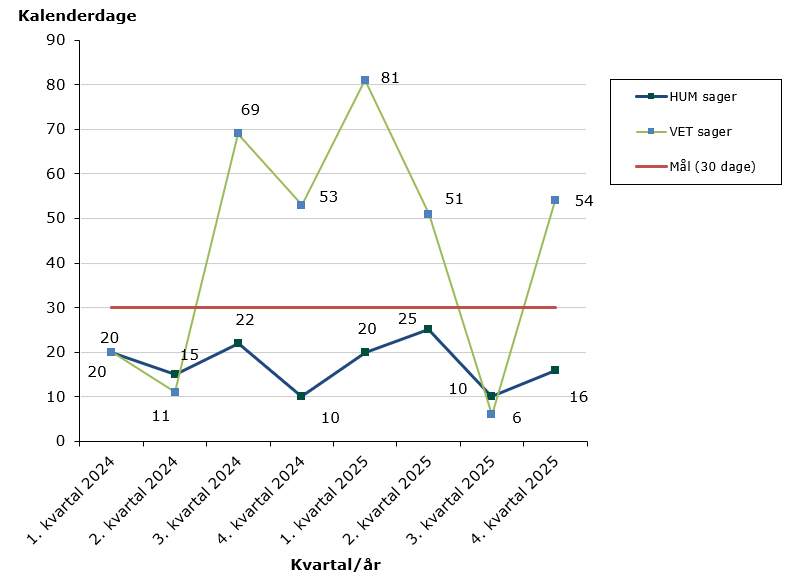 Variationer for veterinære lægemidler: Status for sagsbehandlingstiden for type IA og VNRA for 2025 tom. fjerde kvartal: 62 % af sagerne overholder resultatkravet på sagsbehandlingstid på 30 dage (gennemsnitligt 54 dage)