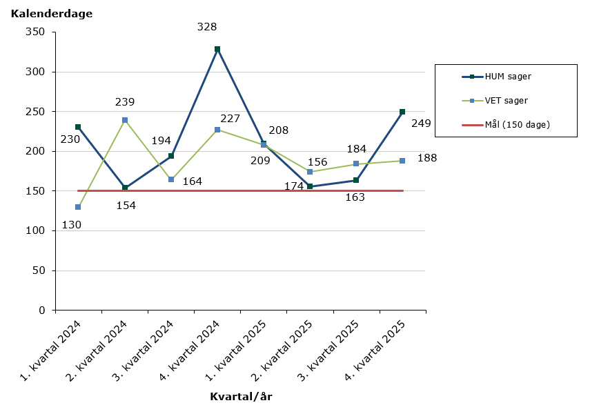 Variationer for veterinære lægemidler: Status for sagsbehandlingstiden for type II og VRA standard/extended for 2025 tom. fjerde kvartal: 39 % af sagerne overholder resultatkravet på sagsbehandlingstid på 150 dage (gennemsnitligt 189 dage)