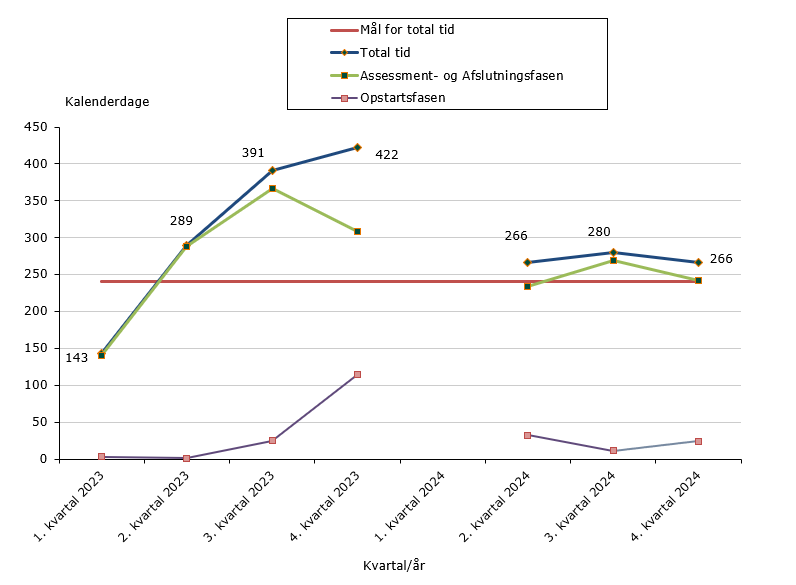 - 25 % af sagerne overholder målet på 210 dage i assessment- afslutningsfasen (gennemsnitligt 250 dage).