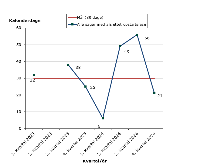 - 80 % af sagerne overholder resultatkravet på 30 dage i opstartsfasen (gennemsnitligt 21 dage).