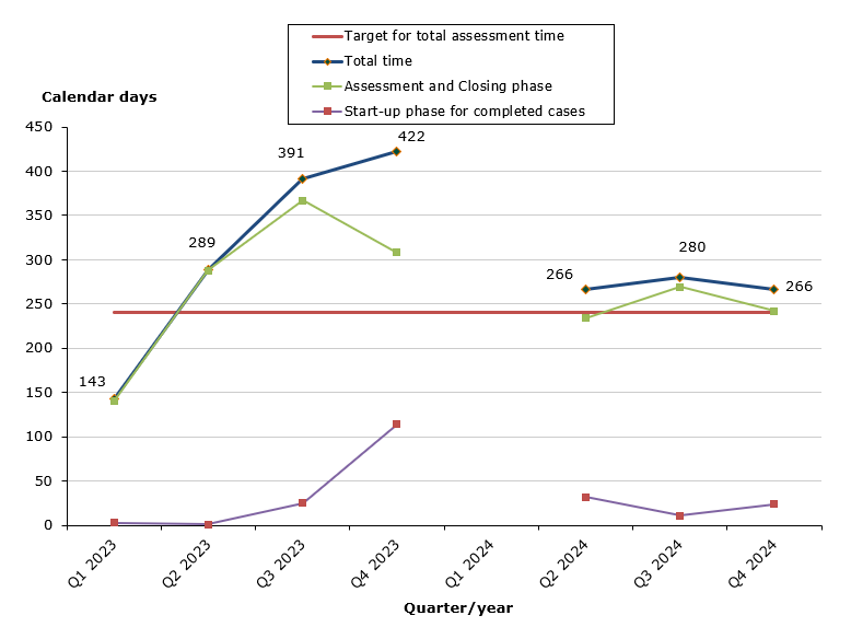 The total assessment time is measured against the target time of 240 days for 2024 from the date on which we receive the application until the date of determination (grant or refusal), excluding any clock-stop days.